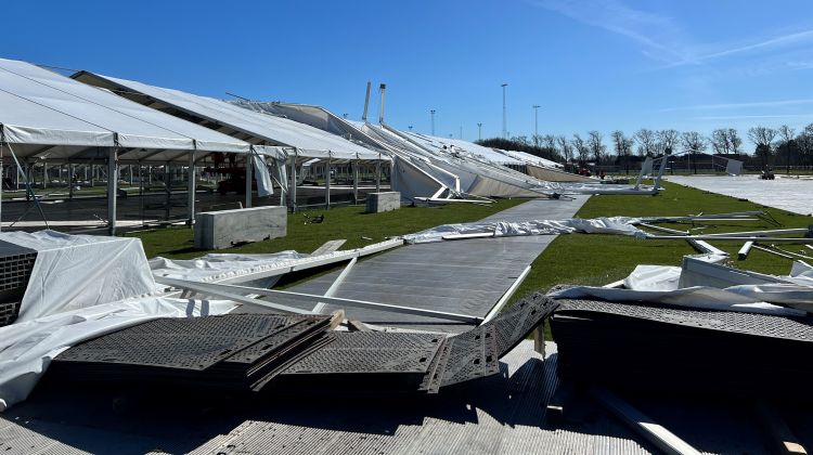 Stormen Dave raserede telthallerne to uger før DM i Skills 2026. Foto: SkillsDenmark